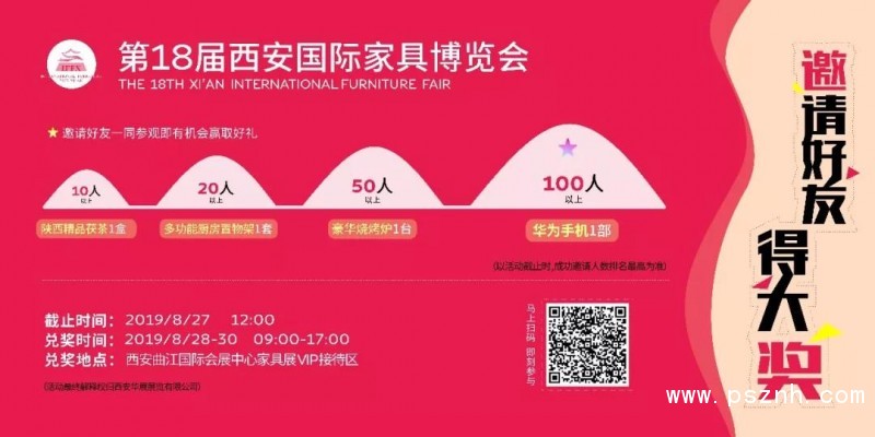 2019年8月28—31日,第十八屆西安國際家具博覽會觀眾預登記現已開通,趕快關注“西安家具博覽會”微信公眾號或點擊上方二維碼進行預報名吧,預報名成功后,將可享受免排隊、免門票,快速入場的福利,期待與您相遇。