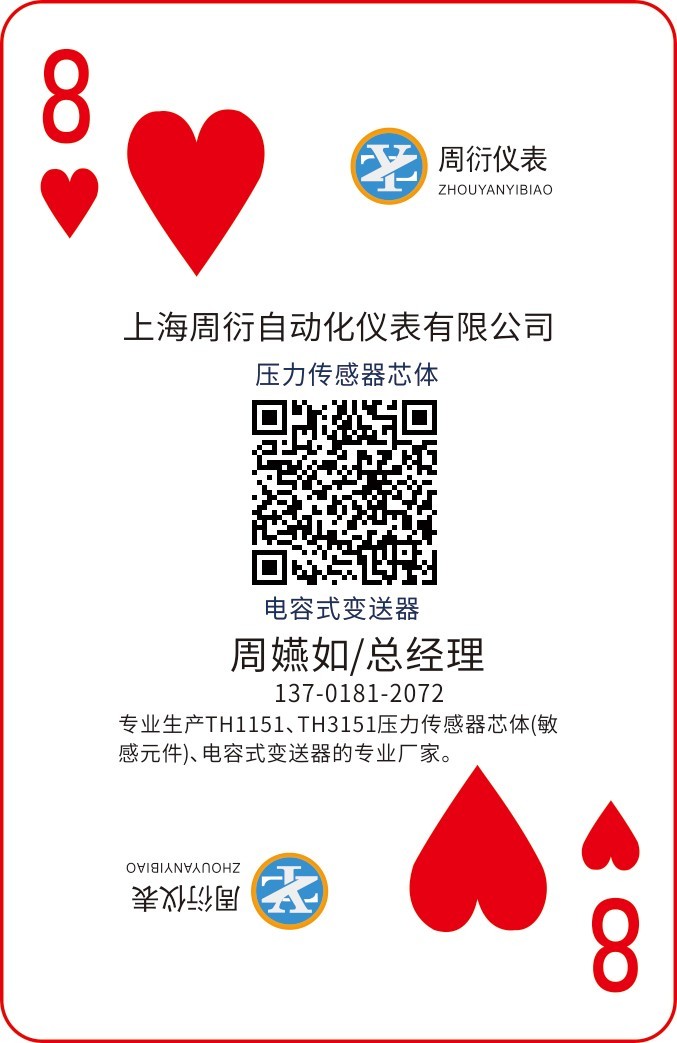 《2020圖頁儀表行業(yè)撲克牌》推出就得到 上海周衍自動化儀表有限公司總經理周嬿如的認同和支持,周總的上海周衍自動化積極認領了紅桃8做為此次的公司的專屬牌!