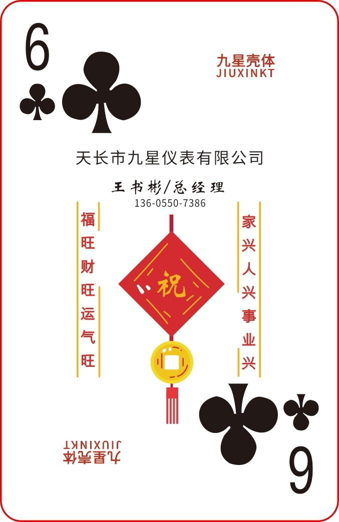 《2020圖頁儀表行業撲克牌》推出就得到天長市九星儀表有限公司總經理王書彬的認同和支持,王總的九星儀表積極認領了梅花6做為此次的公司的專屬牌!