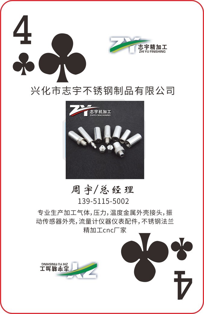 《2020圖頁儀表行業撲克牌》推出就得到 興化市志宇不銹鋼制品有限公司總經理周宇的認同和支持,周總的志宇不銹鋼制品積極認領了梅花4做為此次的公司的專屬牌!