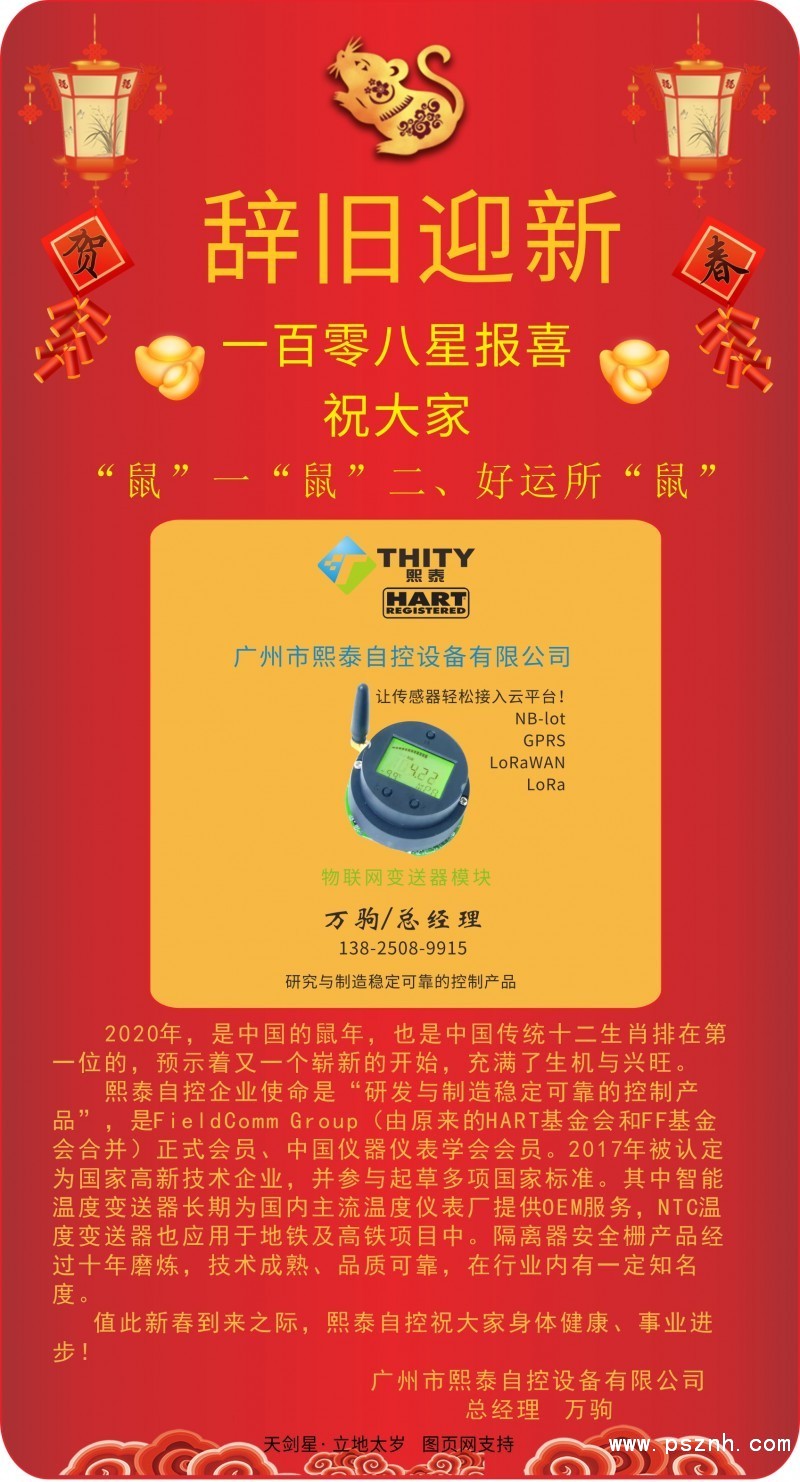 值此新春到來之際,熙泰自控祝大家身體健康、事業進步!
