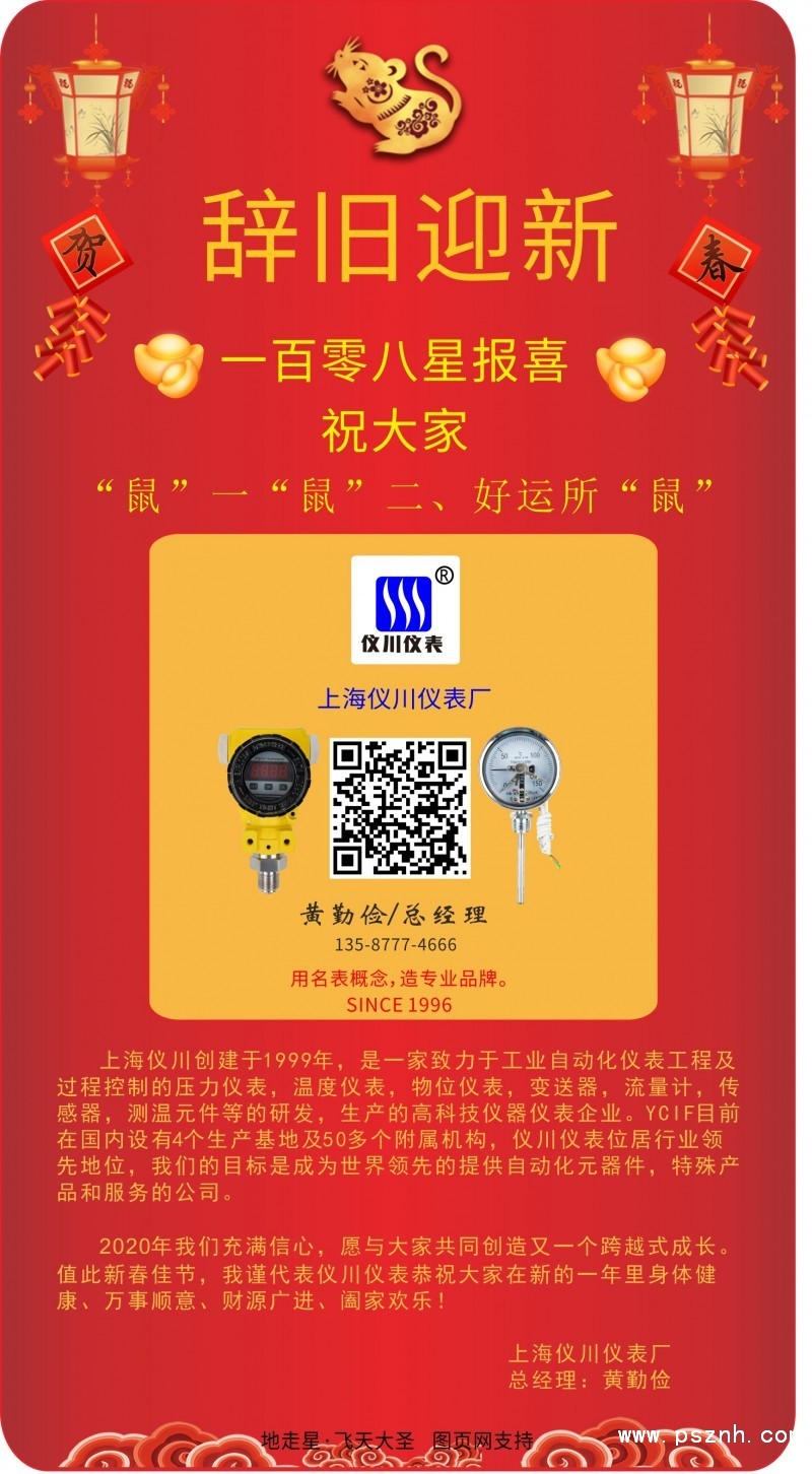 2020年我們充滿信心,愿與大家共同創造又一個跨越式成長。值此新春佳節,我謹代表儀川儀表恭祝大家在新的一年里身體健康、萬事順意、財源廣進、闔家歡樂!