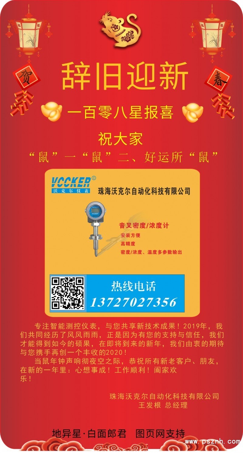 2019年,我們共同經(jīng)歷了風(fēng)風(fēng)雨雨,正是因為有您的支持與信任,我們才能得到如今的碩果,在即將到來的新年,我們由衷的期待與您攜手再創(chuàng)一個豐收的2020!當(dāng)鼠年鐘聲響徹夜空之際,恭祝所有新老客戶、朋友,在新的一年里:心想事成!工作順利!闔家歡樂!