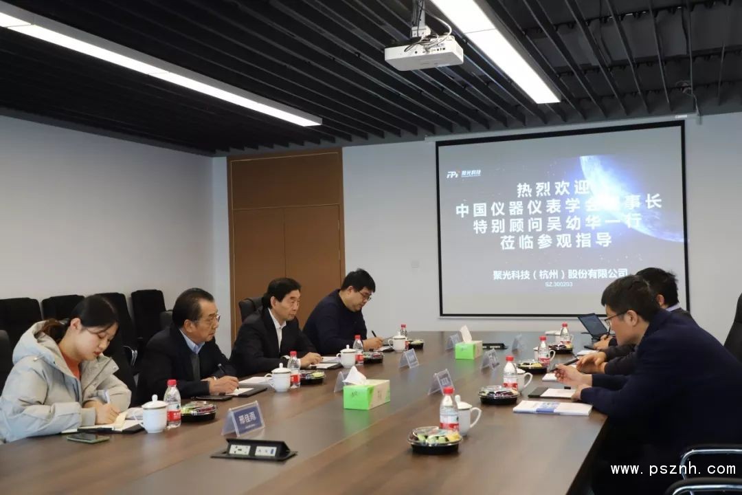 隨后,雙方在會議室進行了深入廣泛的溝通。王健博士向學會領導匯報了聚光科技近期的發展情況和未來的發展規劃,吳幼華名譽理事長一行對聚光科技始終堅持以高端儀器儀表為核心的戰略發展思路和“高端定制”的服務化方式表示了充分的肯定。吳幼華名譽理事長一行還十分關心公司未來的發展,重點了解了目前公司在研發生產和市場營銷上的難點。王健博士提出,希望學會可以為中國儀器儀表企業在有效企業合作和高端人才引進上共享資源、推動合作。學會領導們介紹了目前學會在內外資源對接上的平臺優勢,雙方就后續的資源對接和戰略合作進行了深入的交流和研討,并達成了初步框架性的合作意向。
