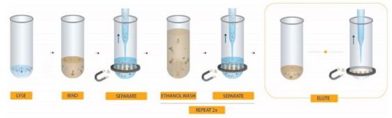 從拭子樣本中提取病毒RNA,是當前病毒研究工作流程中必不可少的步驟。RNAdvance Viral XP旨在利用SPRI(Solid Phase Reversible Immobilization, 固相載體可逆固定)磁珠技術完成高通量的拭子核酸提取,加速工作進程。提取的RNA下游可用于qRT-PCR檢測,以判斷是否存在病毒RNA。
