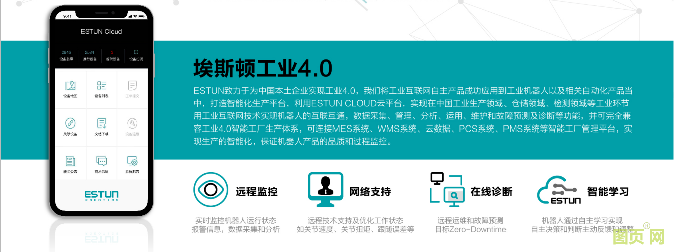 在5G,人工智能,工業(yè)互聯(lián)網(wǎng)賽道中,埃斯頓均進行了超前的布局。Estun Cloud工業(yè)云平臺,為數(shù)字化工廠提供整套信息化解決方案,在遠(yuǎn)程監(jiān)控,遠(yuǎn)程診斷,智能學(xué)習(xí)方面具有卓越的性能。