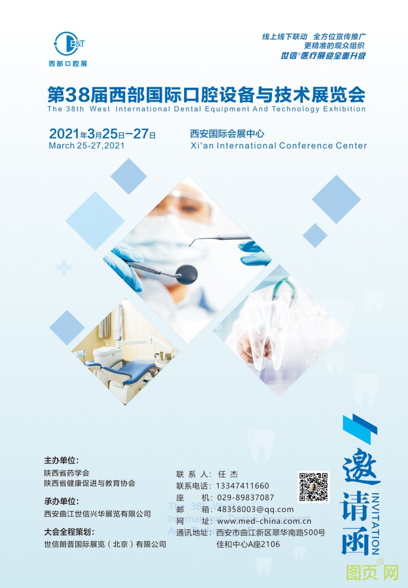 第三十八屆西部口腔展將于2021年3月25-27日在西安國際會展中心(浐灞)隆重舉辦。熱忱歡迎廣大口腔醫學器械及技術相關企業報名參展!