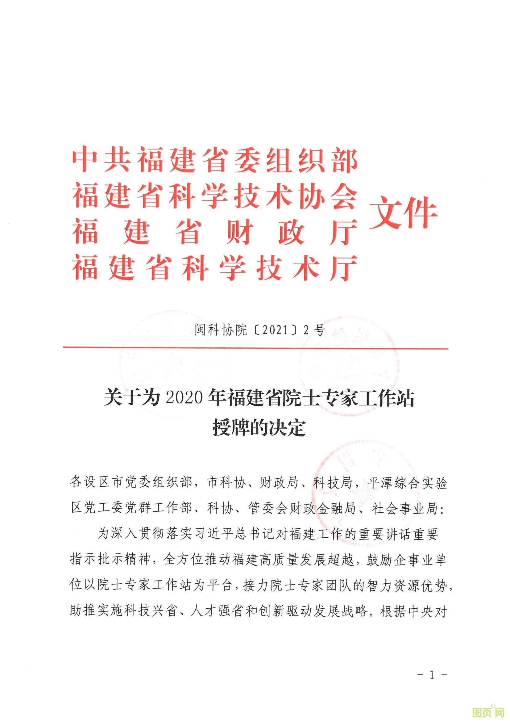 近日,中共福建省省委組織部、福建省科學(xué)技術(shù)協(xié)會、福建省財(cái)政廳、福建省科學(xué)技術(shù)廳聯(lián)合頒發(fā)了閩科協(xié)院[2021]2號《關(guān)于為2020年福建省院士專家工作站授牌的決定》文件,為全省22家院士專家工作站進(jìn)行再次授牌。虹潤院士專家工作站也榮膺此列,為南平地區(qū)唯一獲得再次授牌的院士專家工作站。