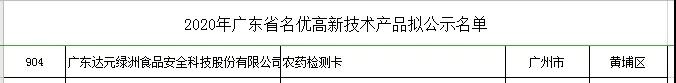 近日,食安科技農藥檢測卡入選2020年廣東省名優高新技術產品名單。本次評選工作廣東省高新技術企業協會開展設立了四個評選環節,從資料形式審查、專家組領域篩選、評選項目評分及最終審核等程序進行,入選1241家。