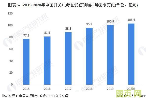 根據中國電源協會的數據,2019年我國開關電源行業市場規模為1503.0億元,而通信行業在開關電源的下游應用中占比為6.71%,因而2019年開關電源在工業領域應用規模為100.9億元。