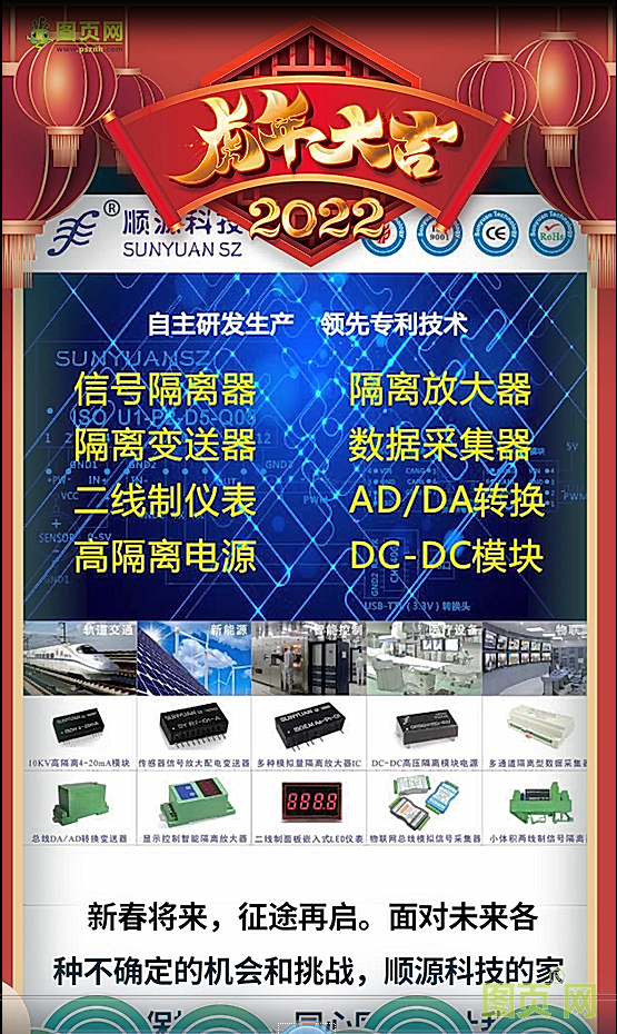 作為著名的模擬集成電路技術應用商,20年來順源科技致力于開發和制造可靠的隔離放大器、隔離變送器、智能變送器和智能數顯表等產品。經過長期的努力,更是將產品輸送到各行各業為國民效力。在此次辭舊迎新之際,望各行各業同仁再創輝煌,勇攀高峰。