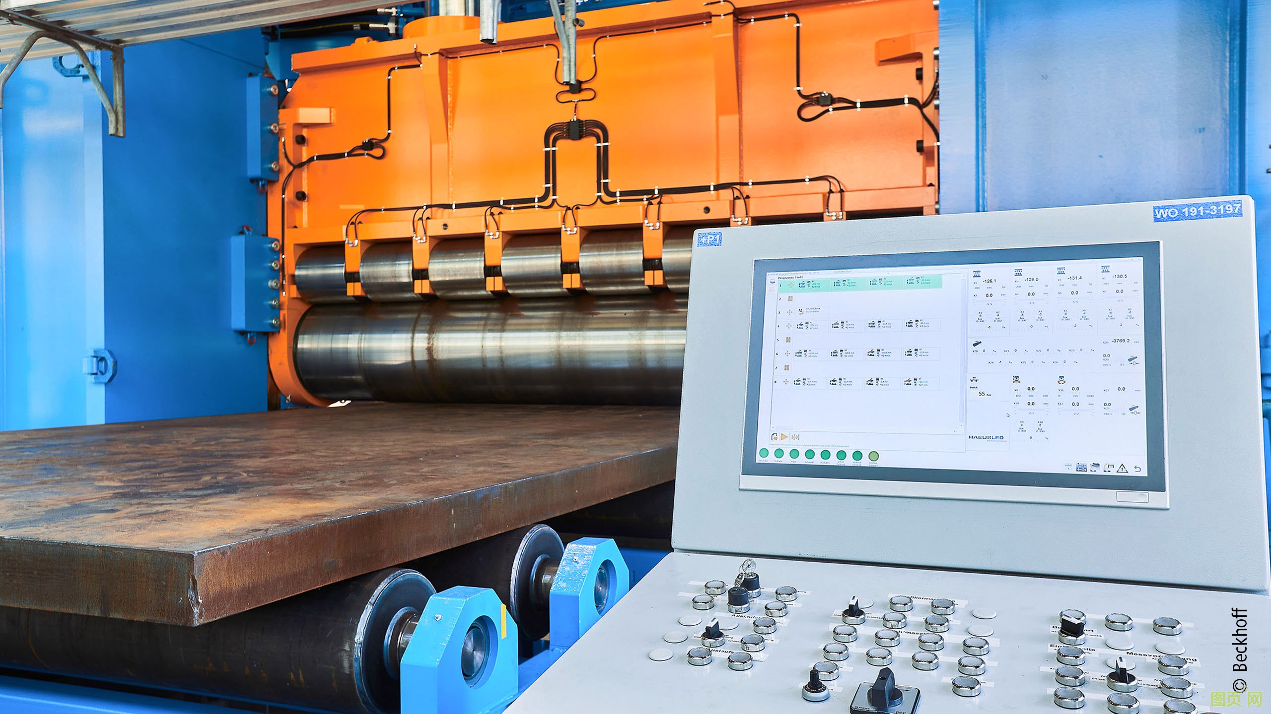 總部位于瑞士 Duggingen  Haeusler 公司是全球大型金屬板材成型設(shè)備的領(lǐng)先企業(yè)之一。2020 年底,他們向中國(guó)最大的造船廠交付了一臺(tái) 1245 噸的巨型矯直機(jī)。據(jù)該公司介紹,這座工廠在全球同類工廠中規(guī)模最大,主要生產(chǎn)油輪船體。倍福基于 PC 的控制技術(shù)確保將用于精確成型鋼結(jié)構(gòu)件的巨大力量引導(dǎo)至正確的方向。