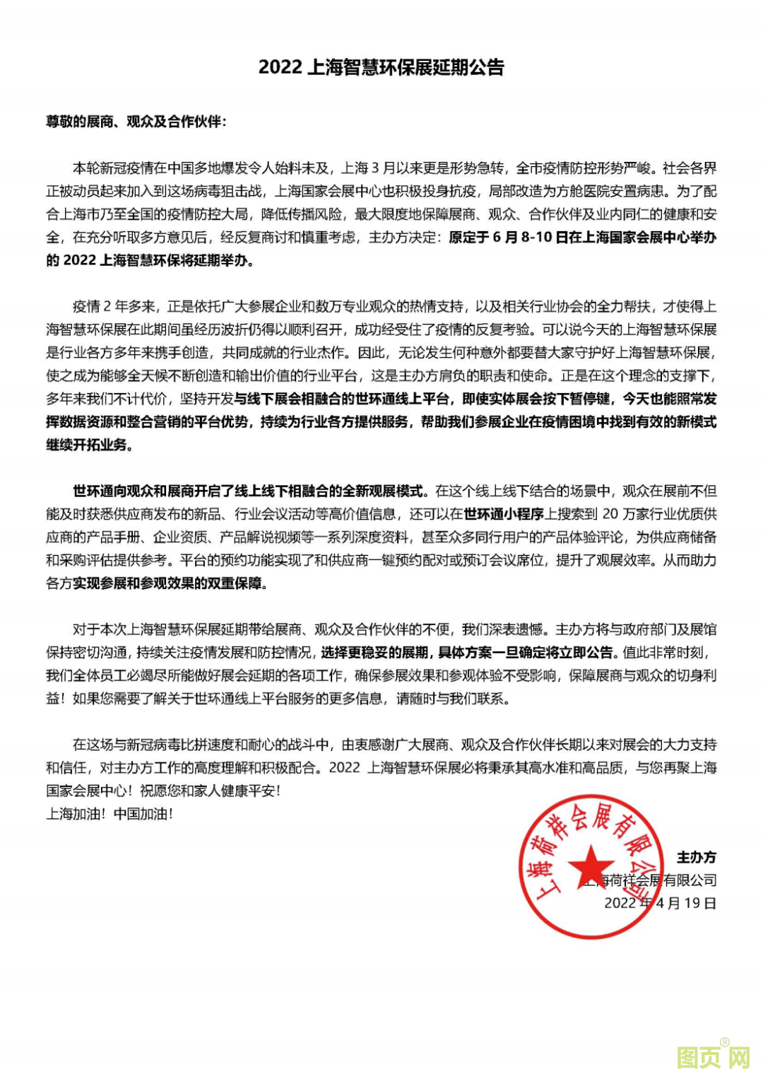 重要通知 | 2022上海智慧環(huán)保展延期,世環(huán)通服務(wù)上線!