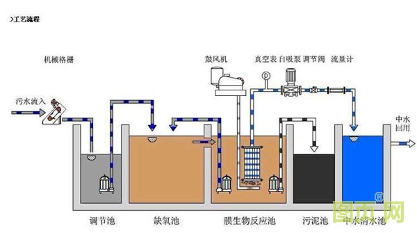 污水進入廠區先通過①截流井(讓廠能處理的污水進入廠區進行處理)進入②粗格柵(打撈較大的渣滓)到③污水泵(提升污水的高度)到④細格柵(打撈較小的渣滓)到⑤沉沙池(以重力分離為基礎,將污水的比重較大的無機顆粒沉淀并排除)到⑥生化池(采用活性污泥法去除污水里的BOD5、SS和以各種形式的氮或磷)進入⑦終沉池(排除剩余污泥和回流污泥)進入⑧D型濾池(進一步減少SS,使出水達到國家一級標準)進入紫外線⑨消毒(殺滅水中的大腸桿菌)然后⑩出水生化池、終沉池出的污泥一部分作為生化池的回流污泥,剩下的送入污泥脫水間脫水外運主要有物理處理法,生化處理法和化學處理法,生化處理法經常被使用,主流處理方法主要看被處理水質和受納水體情況,一般城市生活污水的主流處理方法為生化處理法,如活性污泥法,mbr 等方法。