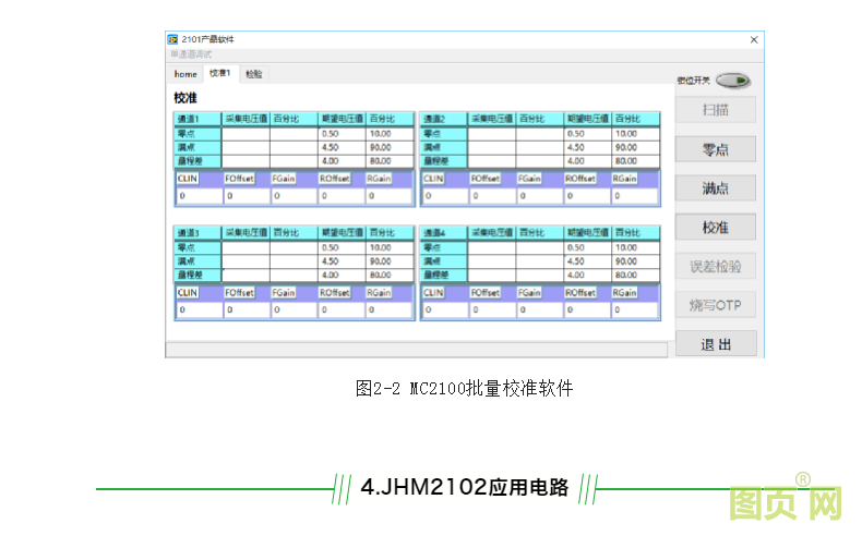 JHM2102有成熟的批量生產套件,特別是MCB2100校準板可以直接安裝到自動校準測試系統上,直接與工業計算機通信,校準速度可以達到5S/支。MCB2100還可搭配2100批量校準軟件實現手動校準,對于年產量不高的客戶手動校準可以減少設備投資,校準速度要慢一些,可以達到45S/支。