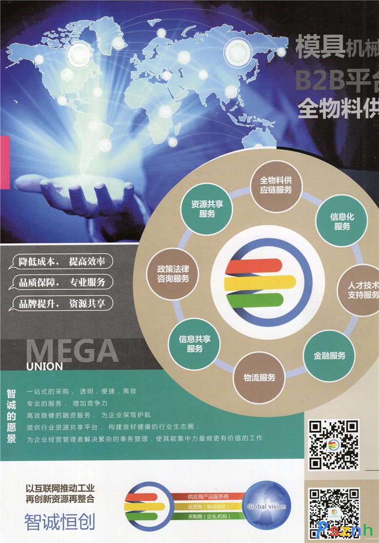 公司立足于全球制造業全價值鏈的高端服務,以互聯網+模具 (制造業) 為切入點, 提供信息化、人才技術、金融 、物流、產品調劑、政策法律咨詢、資源共享等服務,通過共享這些資源和提供各種服務,使資源效能 最大化,惠及整個行業。智誠恒創通過與供應商、資源方建立戰略合作,與行業企業實行會員制服務,從而構建緊密的行業新生態鏈。