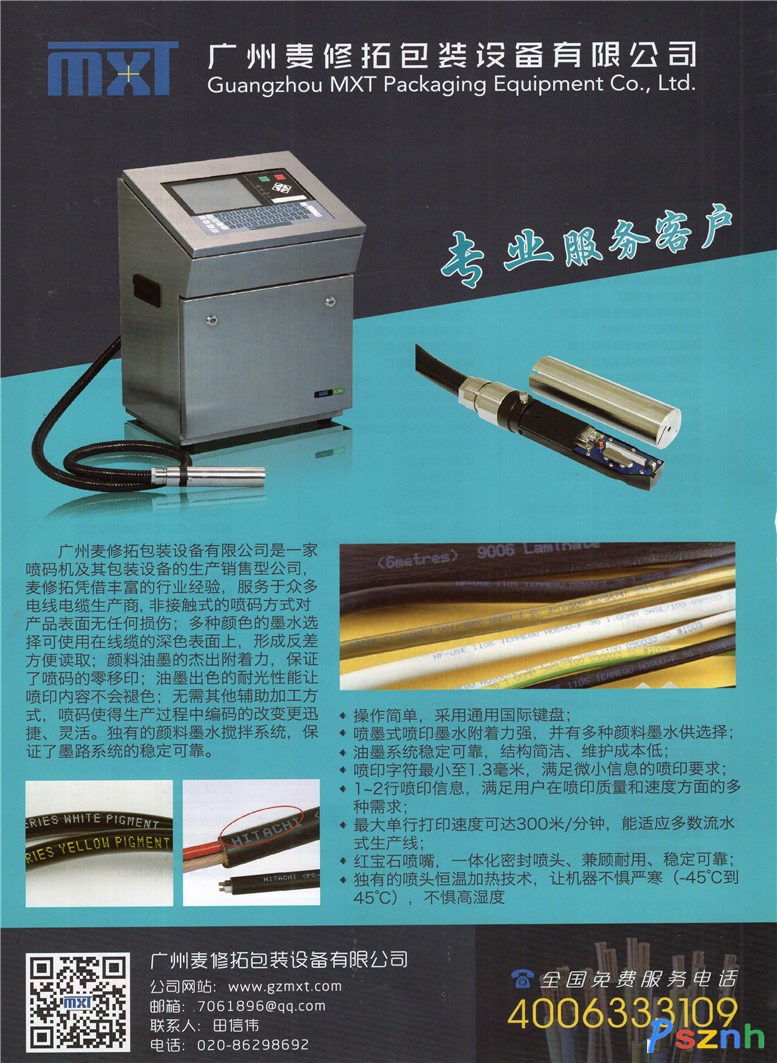 廣州市麥修拓包裝設備有限公司是一家廣州噴碼機維修,廣東噴碼機耗材及其包裝設備的代理銷售公司,為廣東地區,特別是廣州用戶,提供噴碼機維修、噴碼機耗材,公司成立于2002年,具有多年的噴碼機耗材、包裝設備銷售,噴碼機維修和服務經驗,全方位的為您提供包裝上的整體服務,多年公司運作經驗為您提供更快捷、優惠的產品。