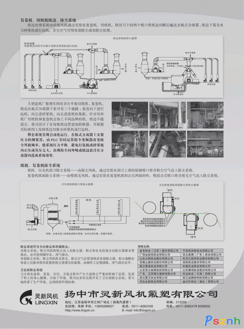 揚中市靈新風機氟塑有限公司是專業生產紙邊處理設備的企業,擁有生產碎紙邊風機、紙氣分離器、消聲器、氟塑料制品的各類大、中型專用和通用設備,各種檢測設備齊全。我公司生產的ZFC型、GFC2型、ZBFC型、ZXFC型、BZFC.Y型系列碎紙風機、XSQ型消聲器、ZQFL型、BSFL型紙氣分離器、氟塑料制品等產品,銷往全國十多個省市自治區的造紙、印刷、包裝、機械等行業,取得良好的社會和經濟效益。我公司生產的碎紙邊風機系列經江蘇省質量技術監督風機產品質量檢驗站檢測合格并取得了江蘇省鎮江質量技術監督局頒發的合格證書.國內紙邊風機技術標準由我公司制定并實施。標準號:Q/321182EYD001-2006。