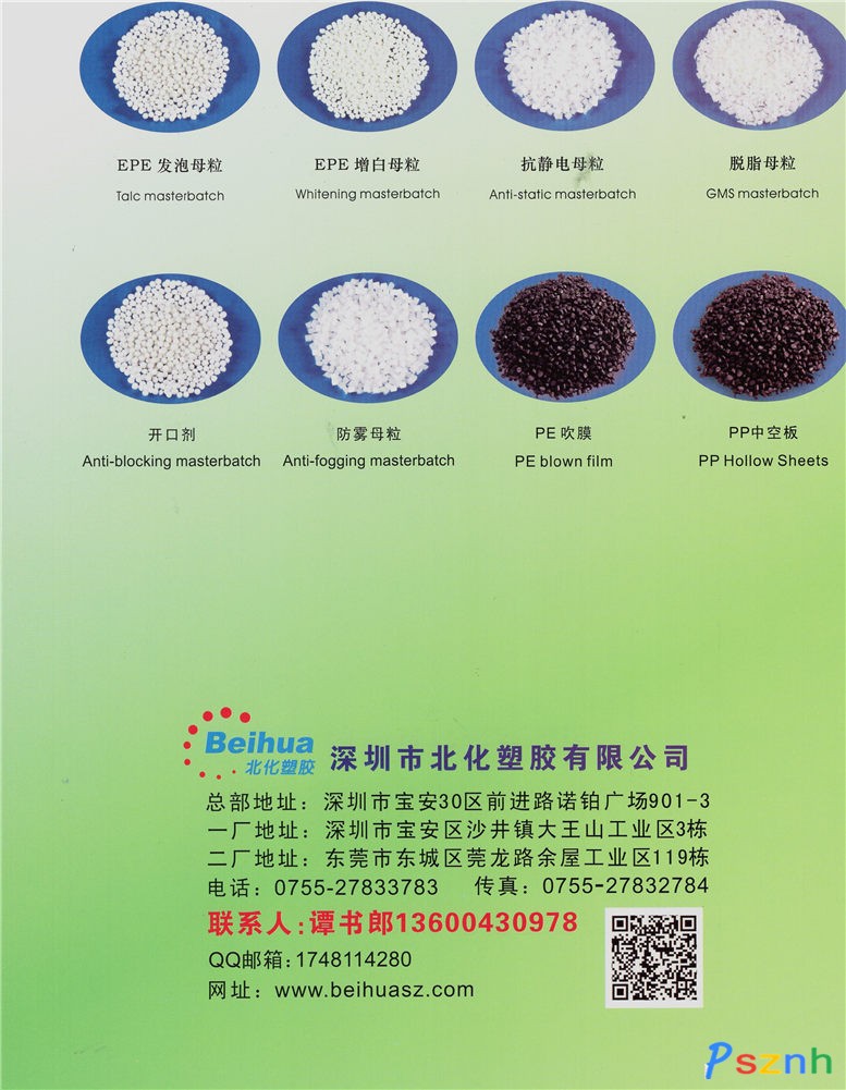 深圳市北化塑膠有限公司 母粒_色母粒_導電料_EPE(珍珠棉)_EPS(廣告板_餐盒)_氣泡膜(氣珠墊)_膠袋_吹瓶_EPE發泡母粒_PS增白母粒_EPE增白母粒_開口母粒_抗靜電母粒_環保母粒_增點擊:721 評論:0 查看原圖
