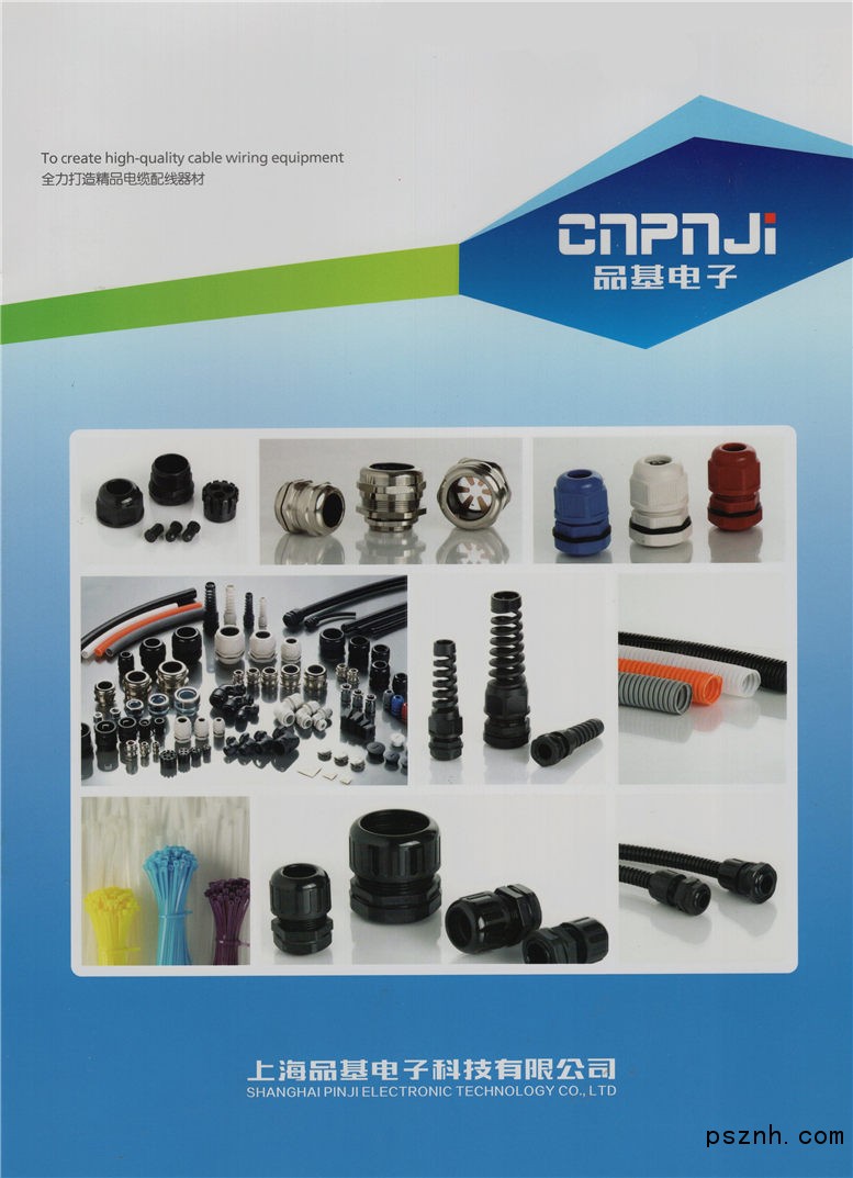上海品基電子科技有限公司是一家專業生產尼龍電纜防水接頭、金屬電纜防水接頭,電纜固定頭,PE PP PA尼龍波紋管、各規格波紋管快速接頭等配線器材的企業。公司擁有雄厚的技術力量和先進的生產設備,嚴格的質量管理,先進的工藝作保障,不斷提升產品質量,努力開拓市場,使公司得以快速發展,并通過了ISO9001:2000質量管理體系國際認證,阻燃尼龍軟管已通過鐵道部產品質量檢測,新款電纜接頭防護等級達到IP68、標準尼龍軟管通過RoHS環保認證,包塑金屬軟管通過RoHS環保認證,產品被廣泛應用于電力機車,汽車線束,機床機械,電子,電氣成套等工業。