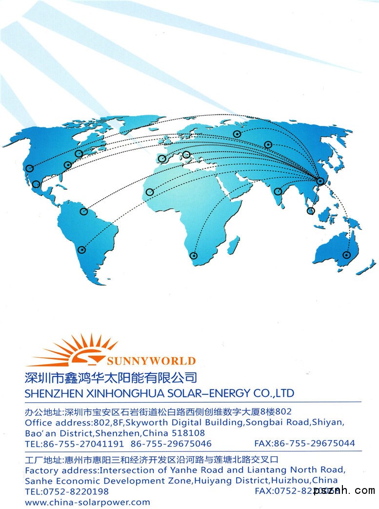 深圳市鑫鴻華太陽(yáng)能有限公司座落在中國(guó)深圳市,毗鄰香港,這里交通便利,人才匯聚,區(qū)域優(yōu)勢(shì)得天獨(dú)厚.
