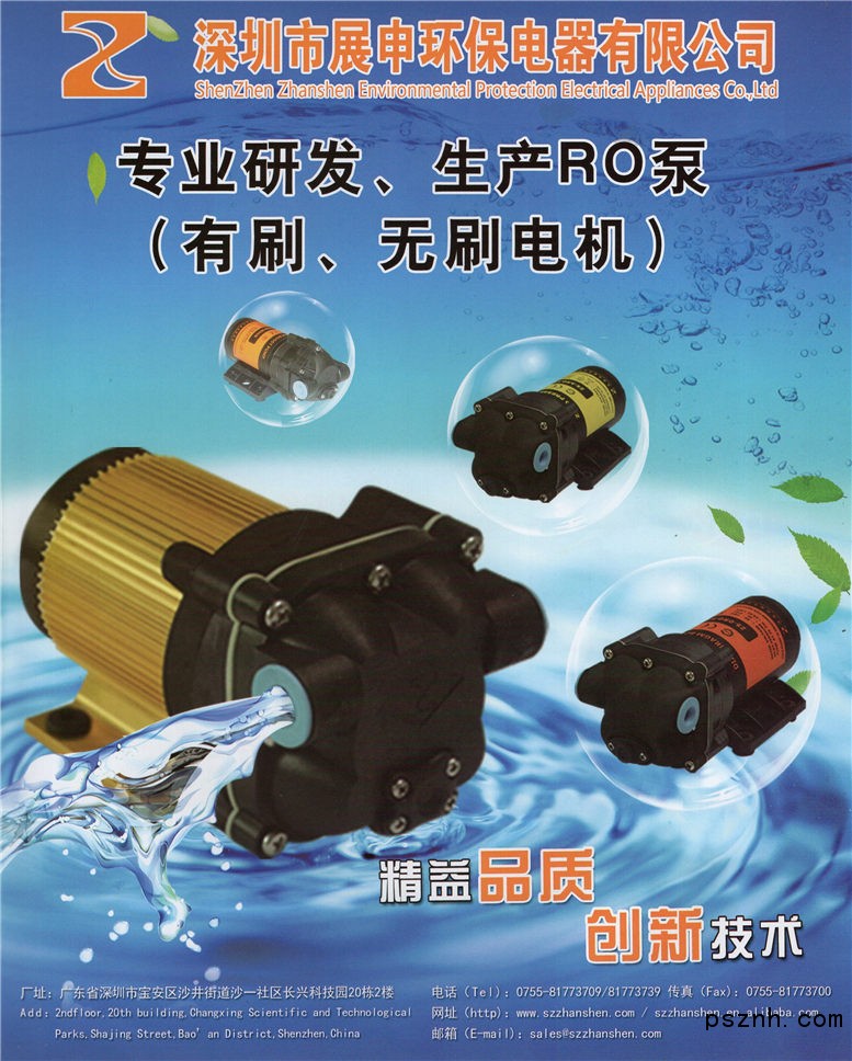 深圳市展申環保電器有限公司 RO凈水機隔膜增壓泵