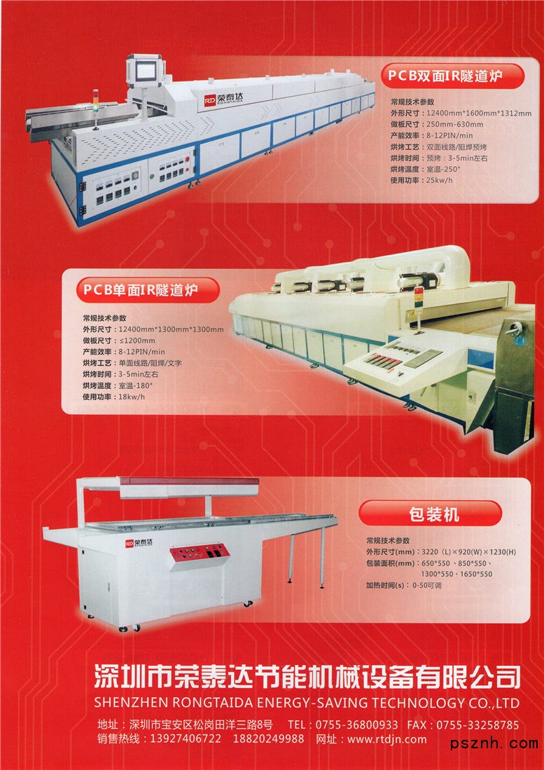 深圳市榮泰達(dá)節(jié)能機(jī)械設(shè)備有限公司,是國內(nèi)領(lǐng)先的LED、PCB等自動涂布烘干印刷設(shè)備廠家,致力于隧道爐,真空包裝機(jī),涂布機(jī),工業(yè)烤箱,手動、半自動絲印機(jī)、UV光固機(jī),拉網(wǎng)機(jī),曬版機(jī)等印刷設(shè)備的研發(fā)與推廣事業(yè),公司主要產(chǎn)品包括:高效節(jié)能型隧道爐,線路板雙面隧道爐,節(jié)能型真空包裝機(jī),UV紫外線光固機(jī),半自動絲印機(jī),全自動絲印機(jī),涂布機(jī)。