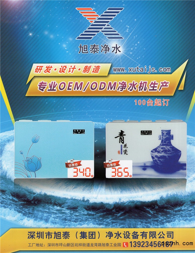 “誠信為本,科技創新,質量取勝,用戶為尊”是我公司始終堅守的宗旨,深圳市旭泰凈水設備有限公司隨時恭候您的來電,貼牌加工不限數量,一臺起做,我們將熱忱的為您提供最佳服務!!!