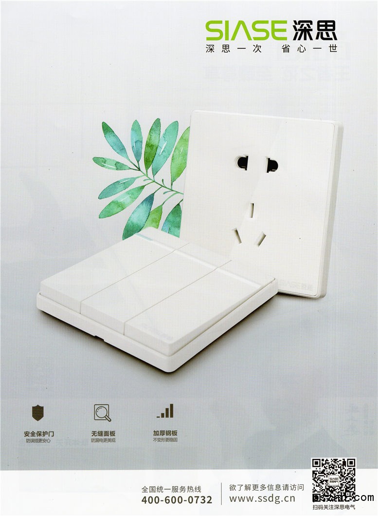 深思始終致力于為家庭創(chuàng)造安全綠色智能的用電環(huán)境,打造出最具競爭力的產(chǎn)品:安全智能的開關(guān)及電器附件產(chǎn)品、LED照明燈具、具有五重保護(hù)的集吊電器、經(jīng)久耐用的衛(wèi)浴五金產(chǎn)品、環(huán)保省電的電線電纜……