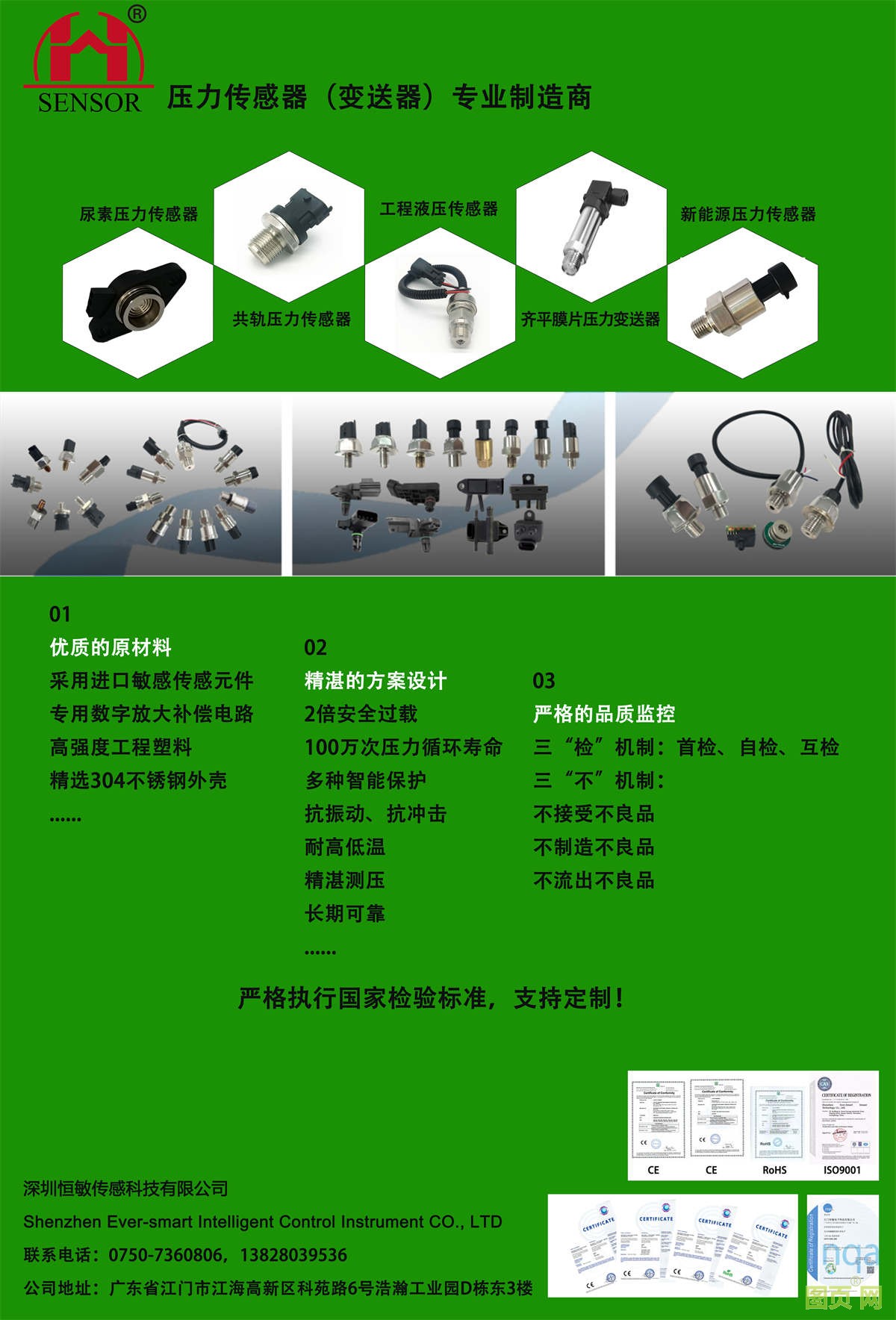 江門恒敏智控儀表有限公司是專業生產汽車壓力傳感器、民用壓力傳感器、工業壓力變送器、數顯壓力表、壓力控制器、壓力報警器產品領域的廠家,是傳感器行業的創新者。