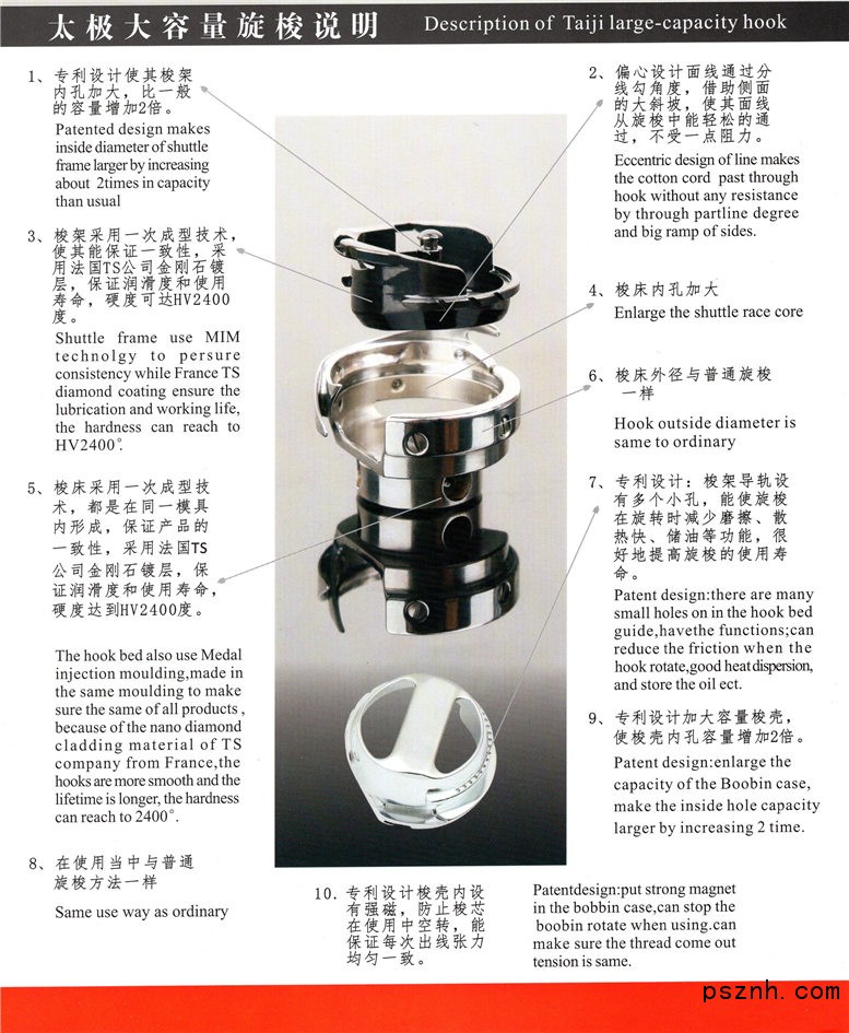 "太極哲豪"--聯盟世界一流的旋梭生產廠家及美國杜邦公司的無油潤滑技術,嫁接航天技術,生產出世界一流的無油縫紉機心臟--“旋梭”。