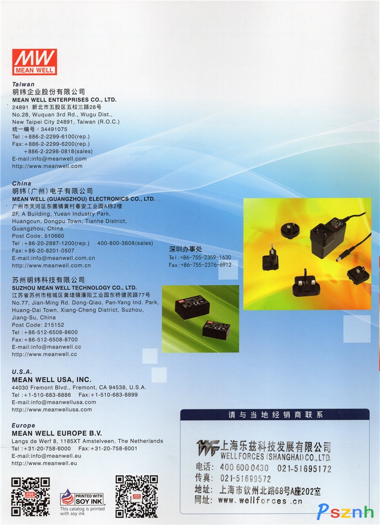未來明緯(廣州)電子有限公司仍會不斷的持續改善,提升服務質量,并期許自己成為國人在開關電源上的第一選擇,成為客戶永久信賴的電源伙伴。 MEAN WELL USA & MEAN WELL EUROPE 明緯不僅僅是一個生產高質量交換式電源的制造商,我們亦希望成為一個出色的電源通路整合中心。基于這個理念,MEAN WELL USA于公元1999年8月在美國加州 Fremont 市成立,MEAN WELL Europe BV亦于2006年在歐洲荷蘭Amstelveen市成立,提供全球客戶迅速的在地化服務。此二明緯成員主要的任務在于提供技術支持、項目評估、快速交貨、產品維修與不良分析等服務給位于美國、加拿大與歐洲的客戶,以節省客戶的時間與成本。