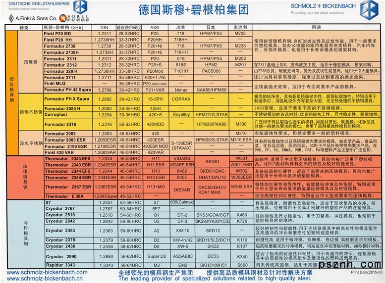 東莞斯穆碧根柏五金制品有限公司 塑料模具鋼 熱作工具鋼 冷作工具鋼