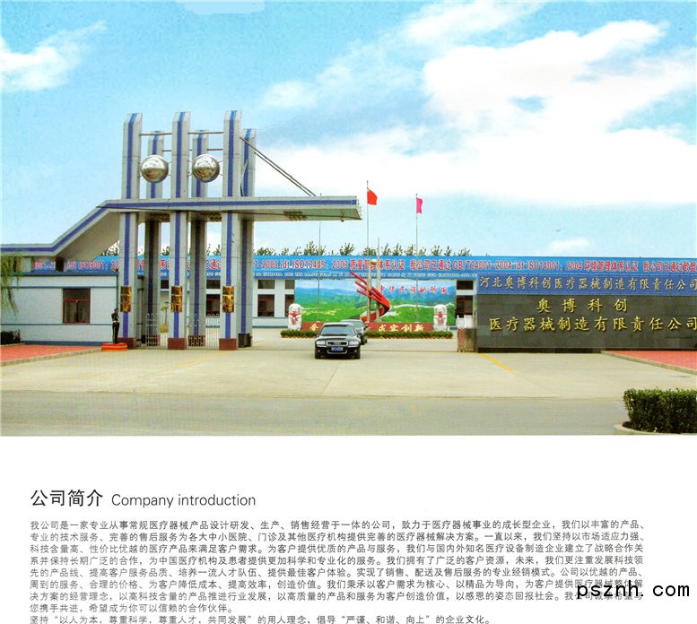 河北奧博科創醫療器械制造有限責任公司是一家專業從事常規醫療器械產品設計研發、生產、銷售經營于一體的公司,致力于醫療器械事業的成長型企業,我們以豐富的產品、專業的技術服務、完善的售后服務為各大中小醫院、門診及其他醫療機構提供完善的醫療器械解決方案。一直以來,我們堅持以市場適應力強、科技含量高、性價比優越的醫療產品來滿足客戶需求。為客戶提供優質的產品與服務,我們與國內外知名醫療設備制造企業建立了戰略合作關系并保持長期廣泛的合作,為中國醫療機構及患者提供更加科學和專業化的服務。我們擁有了廣泛的客戶資源,未來,我們更注重發展科技領先的產品線、提高客戶服務品質、培養一流人才隊伍、提供最佳客戶體驗。實現了銷售、配送及售后服務的專業經銷模式。公司以優越的產品、周到的服務、合理的價格、為客戶降低成本、提高效率,創造價值。我們秉承以客戶需求為核心、以精品為導向,為客戶提供醫療器械整體解決方案的經營理念,以高科技含量的產品推進行業發展,以高質量的產品和服務為客戶創造價值,以感恩的姿態回報社會。我公司誠摯希望與您攜手共進,希望成為你可以信賴的合作伙伴。堅持“以人為本,尊重科學,尊重人才,共同發展”的用人理念,倡導“嚴謹、和諧、向上”的企業文化。