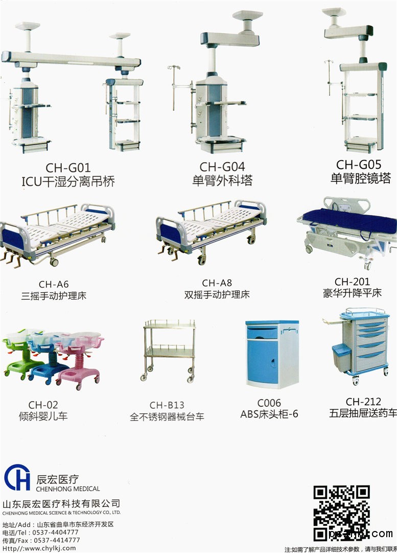 公司關注中國醫療衛生事業、奉獻人類健康事業為己任。利用本身的技術特長,引進德國、日本、美國等國外外先進技術,本著科技創新的發展理念,不斷自主開發科技新產品和適應市場需求的產品。公司主要生產手術無影燈、電動手術臺、醫用吊塔、吊橋、醫用病床、推車、醫用柜臺等醫用設備。)