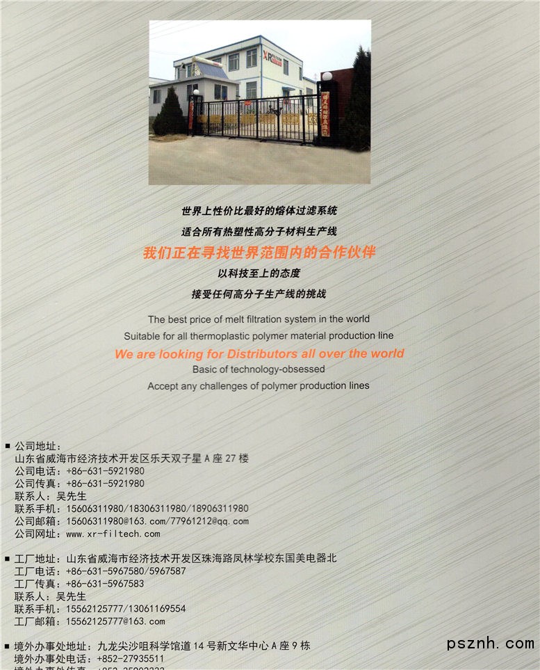 我公司現提出過濾系統的概念,是指從擠出機到模頭間,由一系列設備單元組成的,以過濾功能為主,又集成了增壓,穩流等功能的一整套設備體系。并配以合適的溫度,壓力以及調速等的電氣控制單元,使其成為具有完全自動化的生產系統。