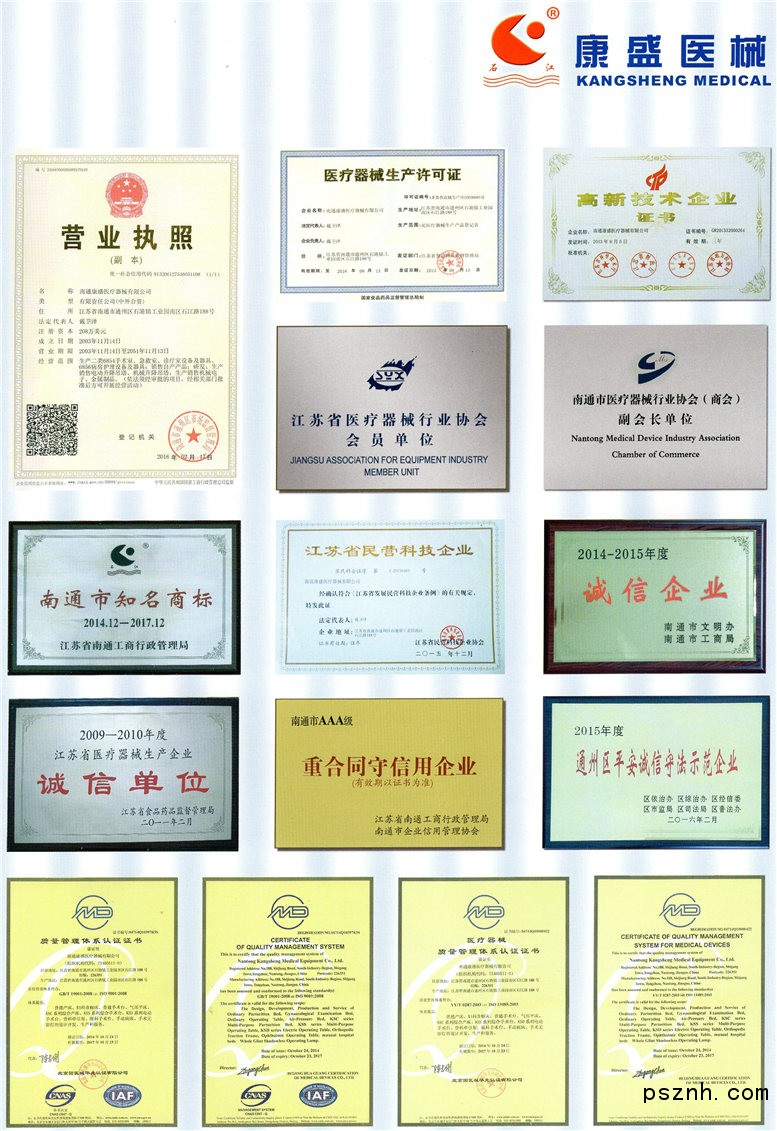南通康盛醫療器械有限公司是南通康誠器械有限公司和羅馬尼亞龍盛國際貿易有限公司組建的一家專業從事醫療器械生產的資深合資企業。公司擁有資產208萬美元,注冊資金208萬美金,占地面積16000m2。公司主要產品有電動手術臺、電動產床、電動多功能醫用床、綜合手術臺、綜合產床、普通手術臺、普通產床、婦科診察床、氣壓平床、骨科牽引架、多功能病床、醫用吊塔、紫外線殺菌車、手術無影燈等系列產品,專業技術人員占公司總人數的35%。本公司連續多年獲得省市“重合同守信用企業”等榮譽,注冊商標“石江”獲南通市知名商標稱號,公司產品獲得多項國家專利,暢銷全國各地,遠銷到世界十多個國家和地區,并多次在政府采購中中標。企業全面通過ISO9001:2008、ISO13485:2003質量管理體系認證。