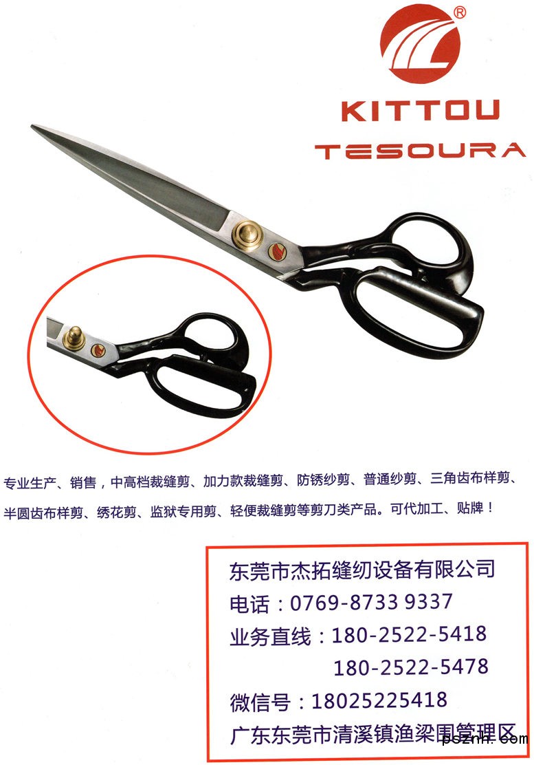 東莞市杰拓縫紉設備有限公司 專業研發、生產、銷售中、高檔裁縫剪,紗剪,布樣剪,輕便裁縫剪等產品。自產自銷,可來料加工。可貼牌生產。公司有專業的研發團隊,管理團隊,生產技術人員。