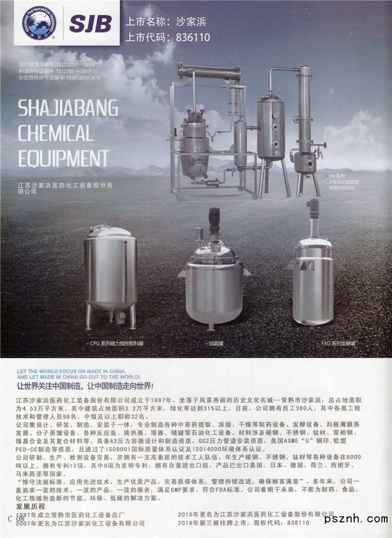 江蘇沙家浜醫藥化工裝備股份有限公司-換熱器_塔器_儲罐_蒸發器_過濾器