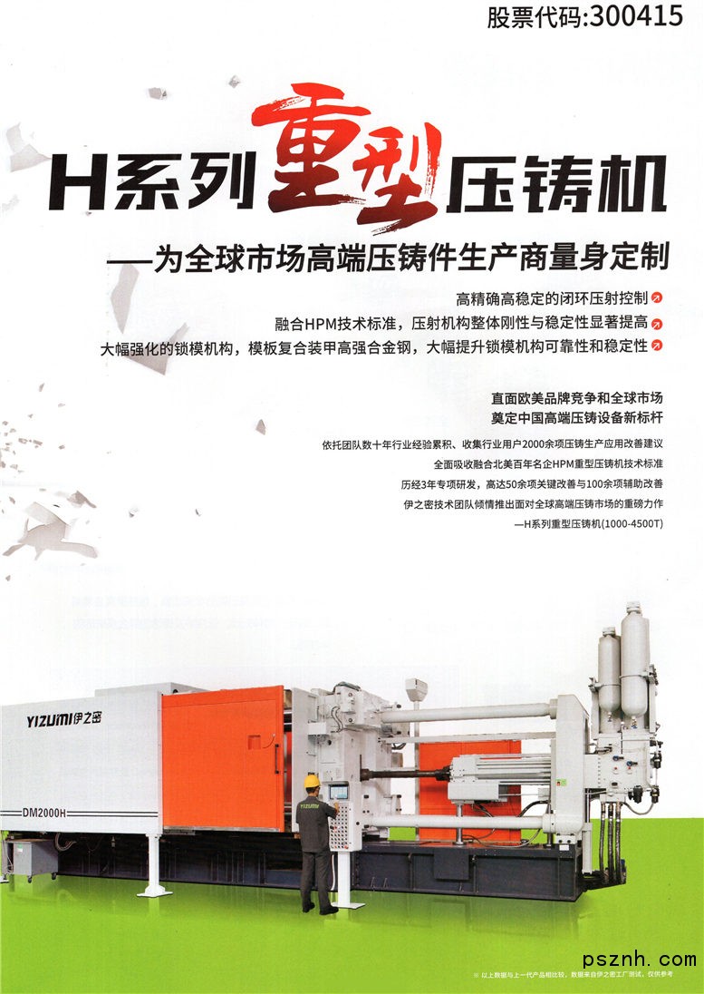 廣東伊之密精密機械股份有限公司,是專注于“模壓成型”專用機械設備的設計、研發、生產、銷售及服務的高新技術企業,以高精度注射成型機、高性能鋁鎂合金壓鑄機、高品質橡膠機為主導產品。 自2002年創立發展至今,現已成為中國極富競爭力和發展潛力的大型裝備綜合服務商、中國頗具規模的裝備制造企業,是中國塑料機械工業協會副會長單位、國家級高新技術企業及國家級火炬計劃項目實施單位。擁有省級企業技術中心、工程中心并設立博士后科研工作站,率先通過了CE認證、ISO9001-2008質量管理體系認證。公司各生產基地總占地面積逾20萬平方米,擁有職工2000多名