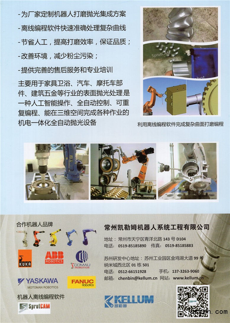 我司同時也是全球領先的SprutCAM(司普錄)機器人離線編程軟件的國內總代理。運用機器人離線編程軟件給客戶提供更為高端和高效的解決方案。極大的擴展了機器人在各行業(打磨,切割,涂膠,噴涂,焊接,檢測等)的應用。比如在打磨拋光應用上,運用機器人離線編程軟件,可以實現更精確的軌跡,已達到客戶對打磨拋光的高端要求。比如在切割行業應用上,客戶應用編程軟件切割后的成品,極大的改善了切割的質量,同時提高了效率,免去了重復示教等問題。