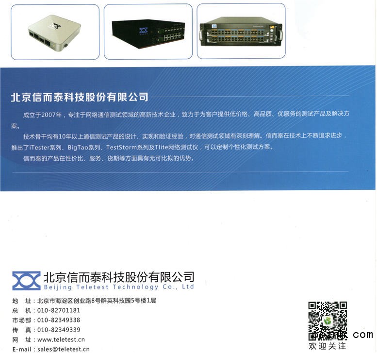 北京信而泰科技股份有限公司是一家具有自主知識產權高新技術企業。自2007年成立以來公司始終專注于通信測試領域,致力于為客戶提供穩定、可靠、高性價比的網絡測試產品及測試解決方案。