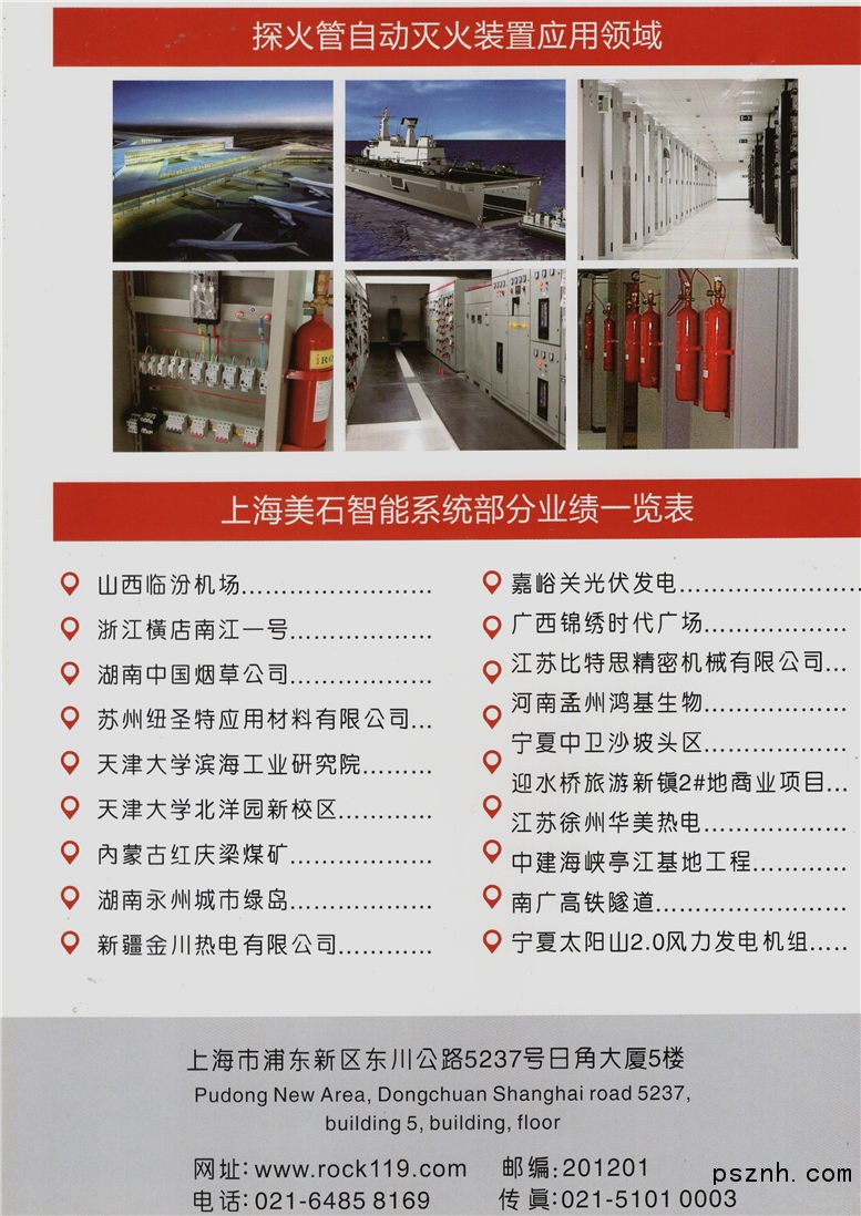 上海美石智能系統有限公司,是經上海市人民政府批準成立的科技型股份制企業,專注于研發制造感溫自啟動滅火裝置(火探管式自動探火滅火系統)、智能消防火災報警系統,通過公安部天津消防研究所檢測認證。致力于為石油化工、電力通信、交通運輸、機械制造等眾多行業提供現代化、自動化、智能化防火滅火服務,是中國感溫自啟動滅火系統的重點企業集團之一。