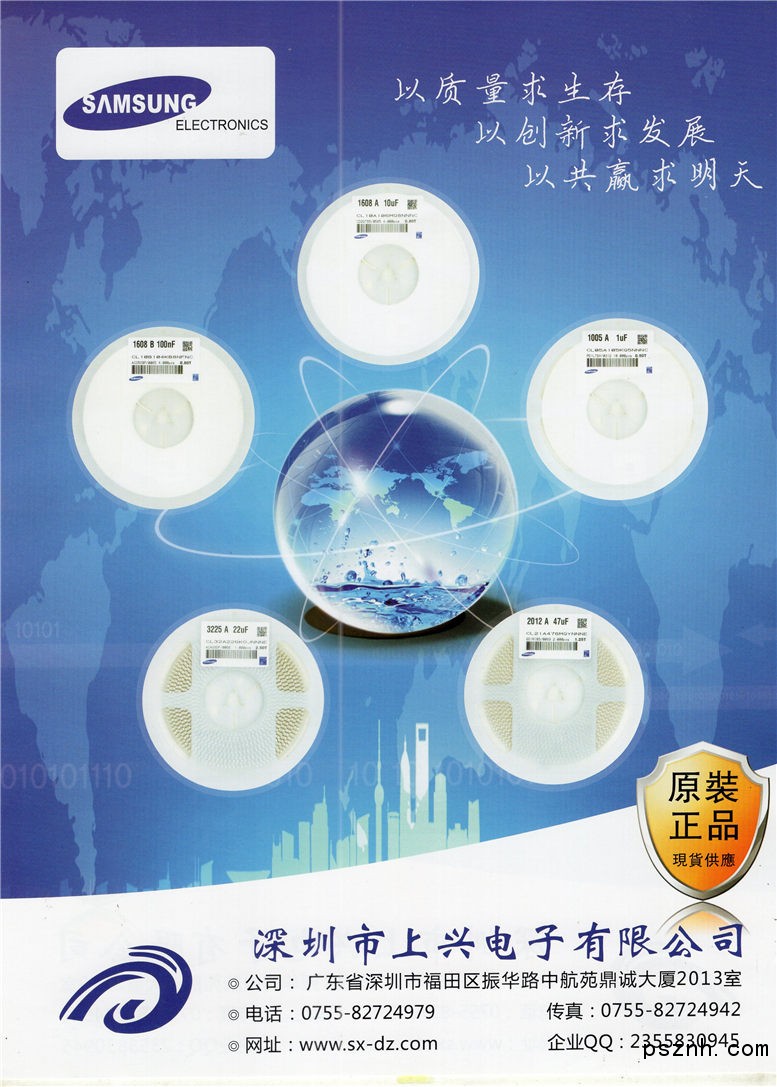 深圳市上興電子有限公司是一家專業電子元器件供應商,上興電子是專業代理三星電容為主!數年來,我們以誠信的服務,優良的品質,平實的價格和交貨快,貨源廣,以及大量的現貨庫存使公司在短時間內迅猛發展, 本公司始終將質量求生存、信譽求發展的精神作為企業的發展宗旨。