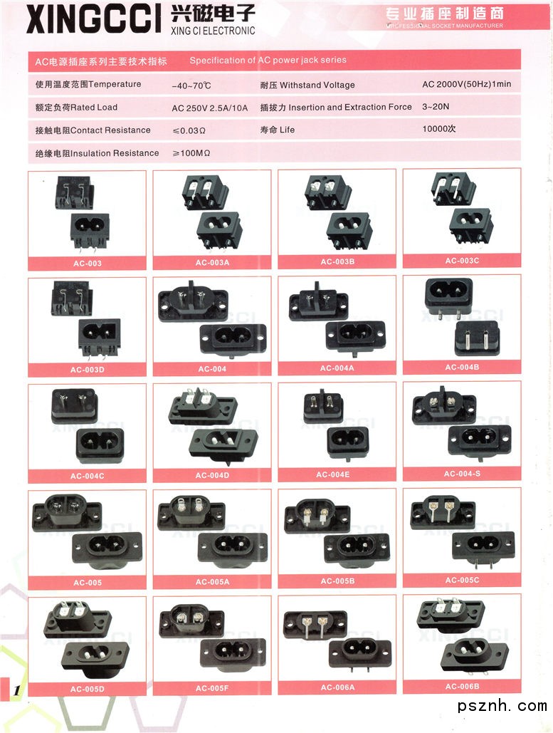 樂清市興磁電子科技有限公司專業從事AC電源插座、八字座、梅花座的開發、研制和生產。 “十年磨一劍”,經歷了大浪淘沙的洗禮,在強手如林的競爭中摸索出一條適合自己可持續發展的道路 。 |