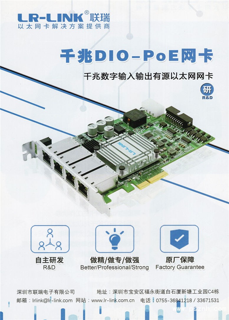 深圳市聯瑞電子有限公司http://www.lr-link.com.cn/成立于2006年,是一家專業以太網解決方案提供商,是集各種接口的以太網網卡的研發、生產、銷售及服務于一體的科技型企業,先后加入PCI-SIG行業協會、中國機器視覺產業聯盟,旗下擁有“LR-link”品牌商標,與TI、Intel、Tehuti、Broadcom、Realtek、Marvell、Icplus等國內外知名芯片廠商建立了緊密合作關系。堅持做專、做精、做強的戰略方針,弘揚務實創新、追求卓越的企業精神,始終把推動科技創新、振興民族品牌作為聯瑞人的責任和義務。