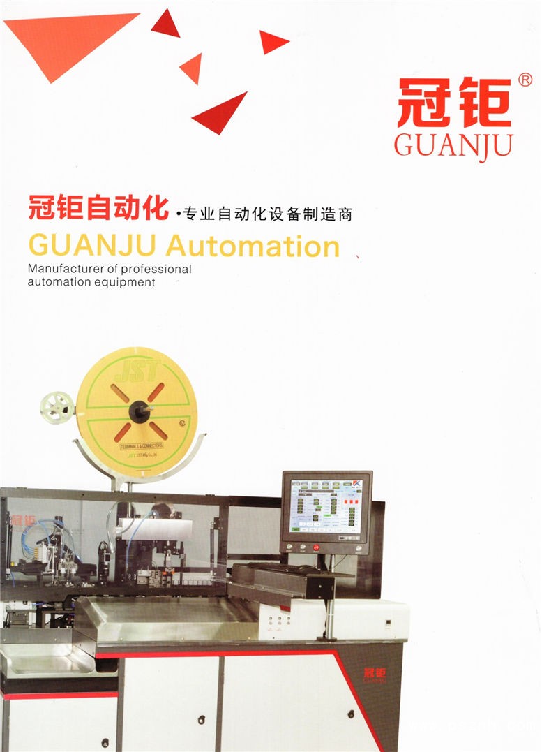 東莞市冠鉅自動化設備有限公司創立于2006年,是集設計、研發、生產及銷售線材未端加工設備為一體的自動化設備制造企業。公司本著服務至上,精益求精的的宗旨,公司本著服務至上,精益求精的的宗旨,為全球客戶提供最優質的產品和最貼心的服務。 本公司的主要產品有:全自動裁線剝皮打端沾錫機、全自動裁線剝皮打端機、超靜音端子機、全自動裁線分線剝皮機、電腦剝線機、電腦切管機、超靜音端子機、2T橫直兩用卡式模、OTP橫直兩用卡式模以及非標自動化線材設備等。 公司采用日臺先進技術,自主研發、生產、改造的機型有三十多種,產品廣泛應用于電子、電器、汽車、燈飾線材加工等方面,產品銷往國內三十多個城市與地區,并與韓國、墨西哥、印度等國家有貿易往來。