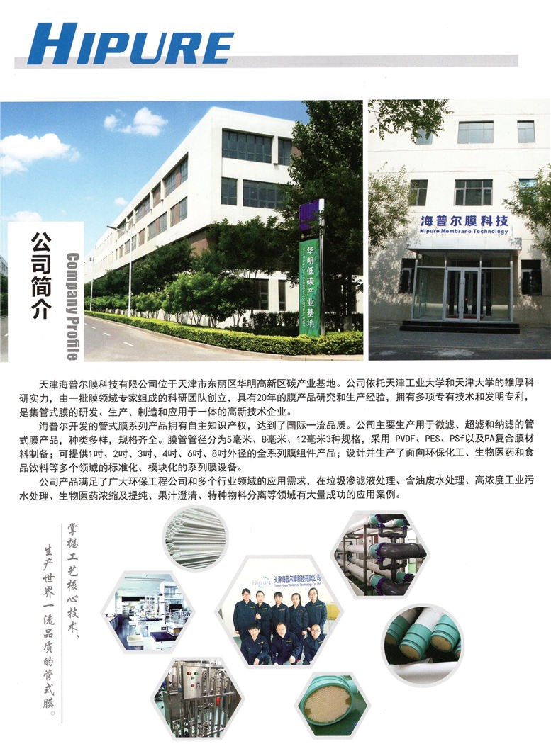 海普爾開發的管式膜技術適用于固液分離領域的微濾、超濾和納濾,擁有自主知識產權,處于國內外先進水平。公司生產的管式膜產品及設備種類多樣,規格齊全,形成了橫跨醫藥生物、食品飲料和環保化工三大領域的全系列設備產品,達到了國際一流品質,在垃圾滲濾液處理、石油采出水回灌、高濃度工業污水處理、生物醫藥、果汁過濾、物料回收提純等領域積累了成熟的工程應用經驗。海普爾管式膜生產工藝先進,性能可靠,與進口管式膜產品相比,還具備質量和價格方面的優勢,在十多個行業領域得到了充分應用,收到完美成效,深受用戶好評。海普爾膜科技正以先進的膜生產工藝、專業的膜分離應用技術、完善的膜產品體系、豐富的工程經驗、一流的產品質量、優良的服務支持、卓越的創新能力贏得越來越多客戶的認同,逐步樹立起良好的口碑,成為中國分離膜應用技術領域的重要力量。