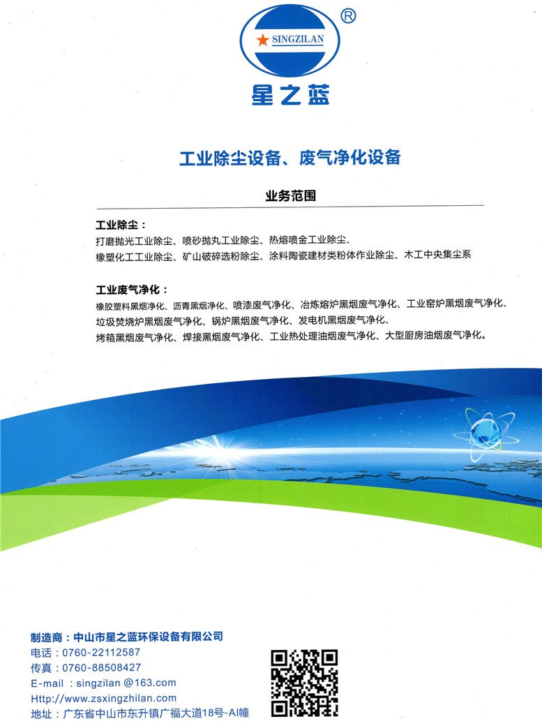 中山市星之藍(lán)環(huán)保設(shè)備有限公司 工業(yè)脈沖除塵設(shè)備、焊煙凈化設(shè)備、漆霧廢氣凈化設(shè)備點(diǎn)擊:678 評(píng)論:0 查看原圖 |