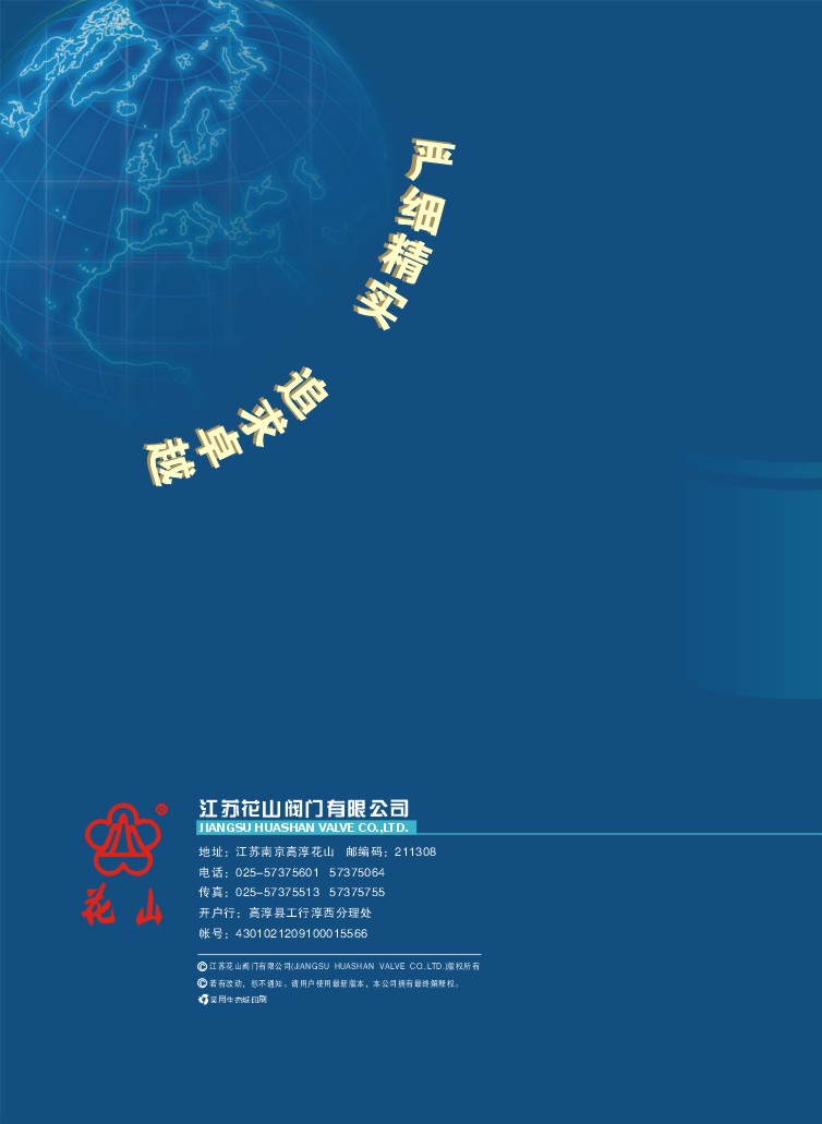 江蘇花山閥門有限公司原位于南京市高淳固城湖畔,隸屬于花山集團,于2009年搬遷到溧水經濟開發區,占100畝,擁有員工600余人,是中國閥門協會會員單位,“花山”牌閥門1998-2006年度被江蘇省名牌戰略推進委員會授予“江蘇名牌產品”稱號,2003年獲“江蘇省著名商標”稱號,2004年被評為“江蘇省質量信用產品”,通過ISO90001-2000質量體系認證,主要生產灰鐵、可鍛鑄件、碳鋼、不銹鋼、銅合金各種材質閥門,形成年產5000余噸閥門的生產能力,公司堅持嚴精細實的企業宗旨,不斷提高產品核心競爭力。展望未來,花山人將以科學的發展觀為指導,以嚴格的質量管理為基石,完善現代企業制度,全面提高產品檔次和質量水平,提供顧客滿意的產品和服務。